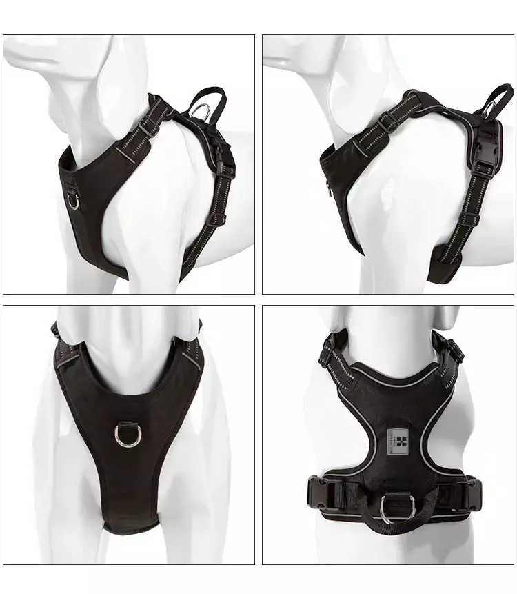 ⚙️ Ajuste perfeito: Com 4 alças reguláveis, o arnês se adapta ao corpo do cão sem limitar seus movimentos.