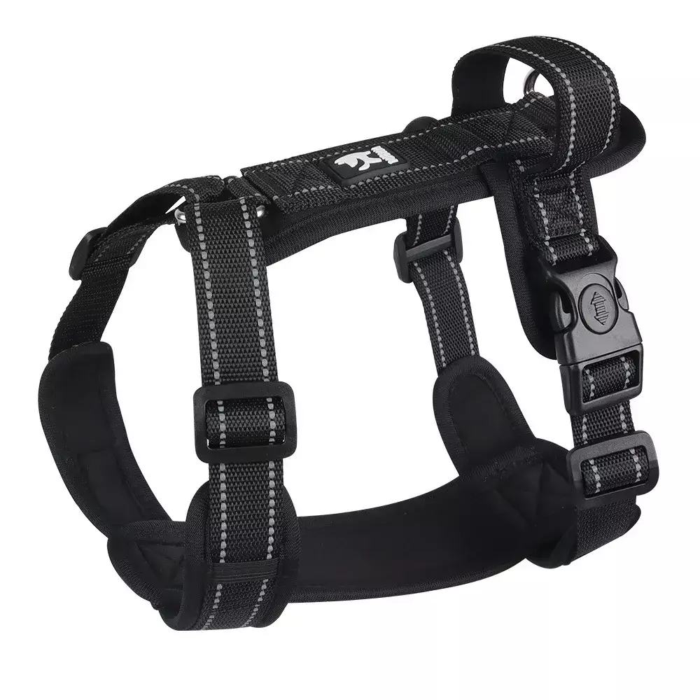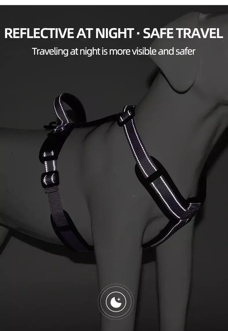 🎽 Conforto acolchoado: O arnês possui revestimento acolchoado que garante conforto durante caminhadas e treinos, evitando atrito e irritação na pele do seu cão.
